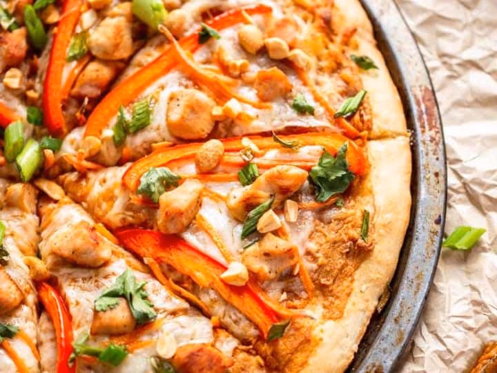 What is Thai chicken pizza topped with?