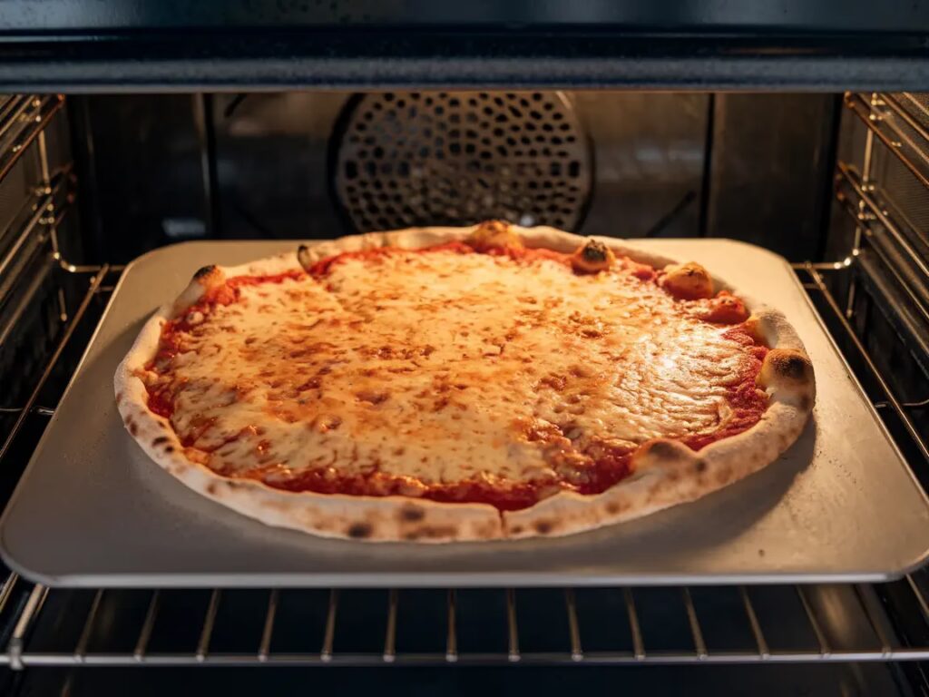 Aby pizza upieczona w tradycyjnym piekarniku była udana, zaleca się użycie kamienia do pizzy lub blachy do pieczenia, które należy wcześniej rozgrzać, aby utrzymać wysoką temperaturę i zapewnić chrupiący spód.