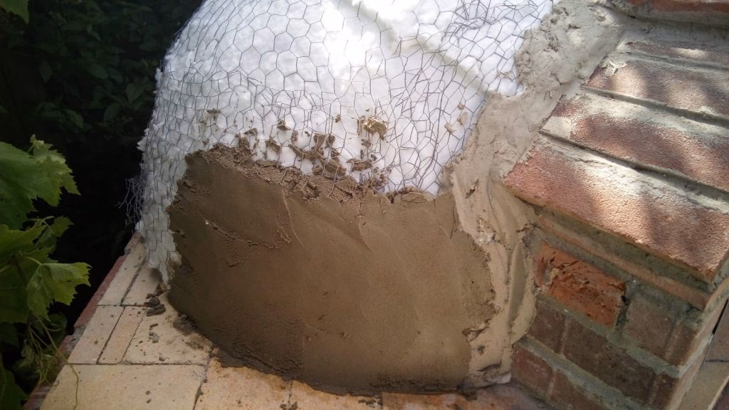 Po zakończeniu budowy ceglanej struktury, piec należy zaizolować od zewnątrz. Można użyć starych mat z włókna szklanego lub, co jest bardziej zalecane, wełny skalnej (Rockwool). Po nałożeniu izolacji, można ją pokryć zaprawą lub zbudować wokół pieca wodoodporną konstrukcję, która ochroni go przed warunkami atmosferycznymi. Pamiętaj, aby pod siatką z drutu (która będzie trzymać zaprawę) umieścić niepalną folię aluminiową na izolacji, aby zapobiec jej ściskaniu.