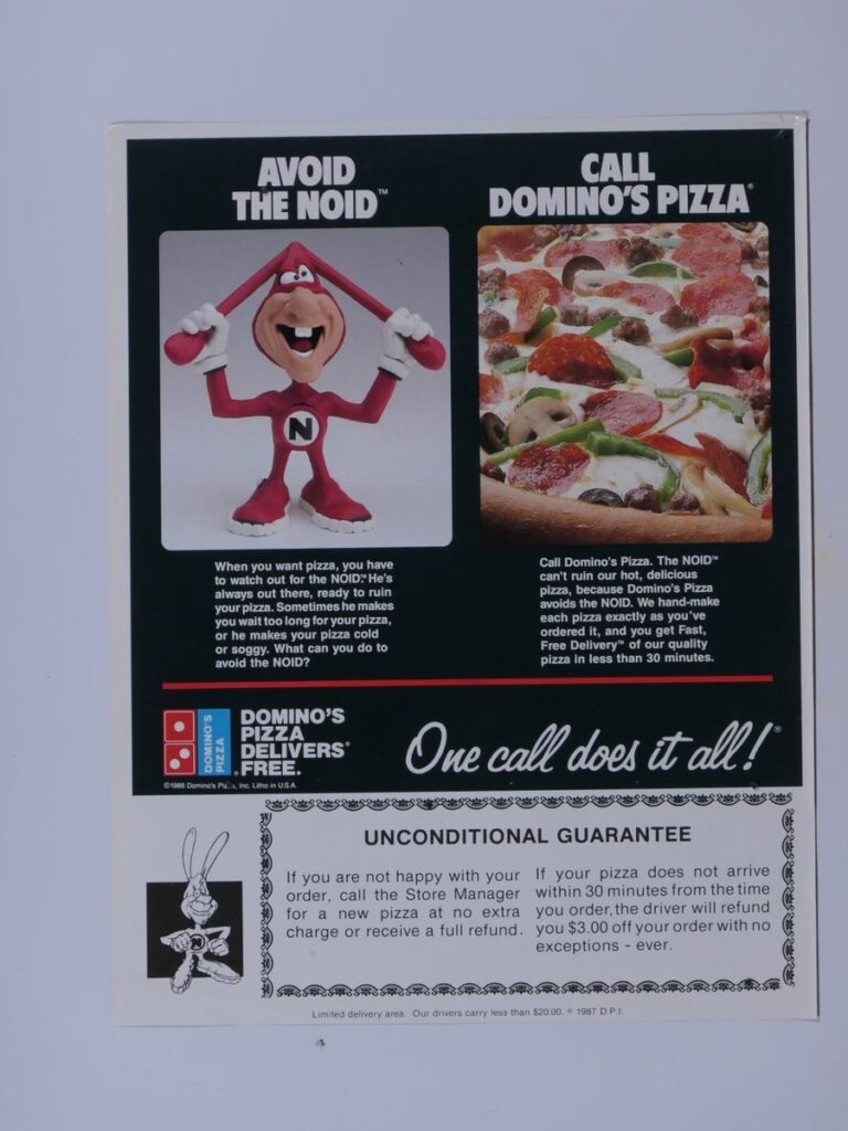 Noid, którego imię było grą słów od angielskiego „annoyed” (irytujący), był animowaną postacią przypominającą trolla z zębami i długimi uszami, ubranego w czerwony kombinezon królika. Został stworzony przez Domino's Pizza w 1986 roku w ramach kampanii reklamowej, która miała podkreślić szybkość i niezawodność ich dostaw. Noid reprezentował wszelkie przeszkody, które mogły opóźnić dostarczenie pizzy – zimną pizzę, zgniecioną pizzę czy taką, która po prostu „nie była idealna”. Hasło kampanii brzmiało „Avoid the Noid” (Unikaj Noida), sugerując, że Domino's jest „Noid-odporne” i nic nie powstrzyma ich przed dostarczeniem pizzy na czas.