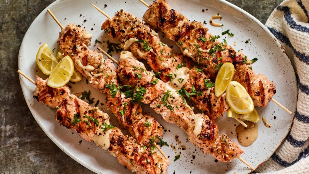 - Tuńczyk: Szczególnie tuńczyk świeży, pokrojony w kostkę, doskonale sprawdzi się na szaszłykach.