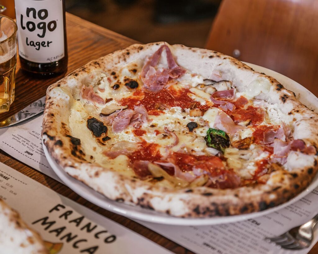 Franco Manca to przede wszystkim pizzeria, specjalizująca się w pizzy na zakwasie. Oferują również proste przystawki, sałatki i desery, ale głównym daniem jest pizza.