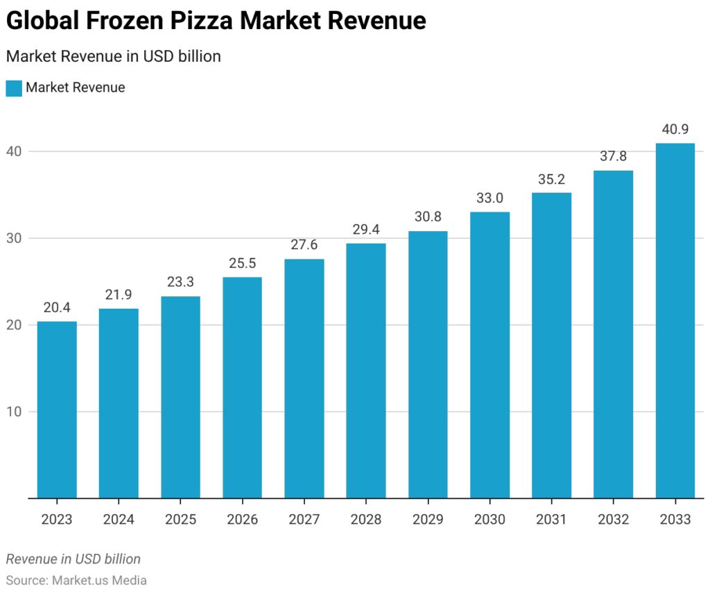 W ubiegłym roku sprzedaż mrożonej pizzy wzrosła o 11%, co przypisuje się zwiększonym wysiłkom promocyjnym detalistów. W Stanach Zjednoczonych, w ciągu 52 tygodni kończących się 23 kwietnia 2023 roku, podkategoria mrożonej pizzy odnotowała znaczący wzrost sprzedaży wartościowej o 10,7%, osiągając 6,8 miliarda USD. Jednak sprzedaż jednostkowa spadła o 2,8%, a średnia cena za jednostkę wzrosła o 13,9% do 4,94 USD. Sprzedaż całych pizz wzrosła o 16,3% do 1,2 miliarda USD, a ich cena o 7,0% do 7,50 USD za pizzę. Podobnie, sprzedaż kawałków pizzy wzrosła o 18,3% do 630,2 miliona USD, z ceną 2,62 USD za kawałek.