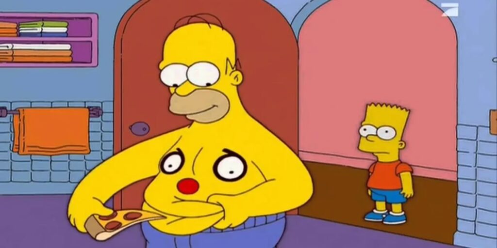 Homer wybrał się na przejażdżkę po Fast-Food Boulevard, aby objadać się śmieciowym jedzeniem tuż przed rozpoczęciem nowej diety. Wśród potraw, które zjadł, było danie, które sam stworzył: pizza z Luigi's Pizza, posypana frytkami z Krusty Burger i zwieńczona homarem, najwyraźniej z Dead Lobster. Po dodaniu homara, Homer zamknął pudełko po pizzy, potrząsnął nim i zjadł wszystko, łącznie z pudełkiem. To doskonale obrazuje jego bezgraniczny apetyt i brak jakichkolwiek barier, gdy chodzi o jedzenie.