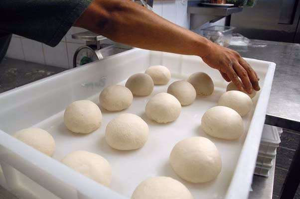 If you’re not that into math, don’t worry; just follow the chart or the recommended weights to determine what dough ball weight you need to achieve the crust size you like. Our standard recipe (above) makes 885 grams of dough perfect for four 12-inch New York-style crusts or three 14-inch crusts.