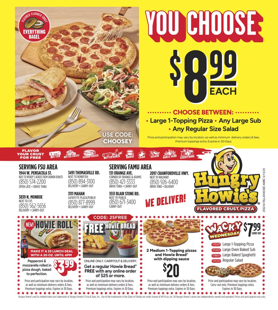 Hungry Howie's® z dumą posiada ponad 550 lokalizacji w 22 różnych stanach. Wiele z naszych sklepów działa jako niezależne franczyzy i oferuje własne specjalne zniżki i kupony w swoich lokalnych obszarach. Aby dowiedzieć się o tych ekskluzywnych lokalnych ofertach, koniecznie przeszukaj naszą stronę internetową, używając swojego kodu pocztowego. Możesz również zadzwonić do nas, aby zapytać o nasze specjalne oferty, a my poinformujemy Cię, co pysznego mamy dziś do zaoferowania. Lokalni operatorzy często mają elastyczność w tworzeniu ofert, które najlepiej odpowiadają potrzebom ich społeczności.