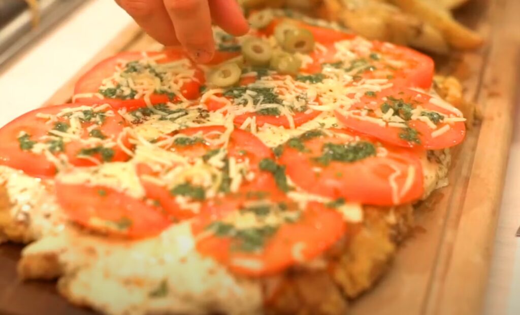 Kiedy milanesa jest już gotowa, czas na „pizzową” transformację! To etap, w którym danie nabiera swojego charakterystycznego smaku i wyglądu.