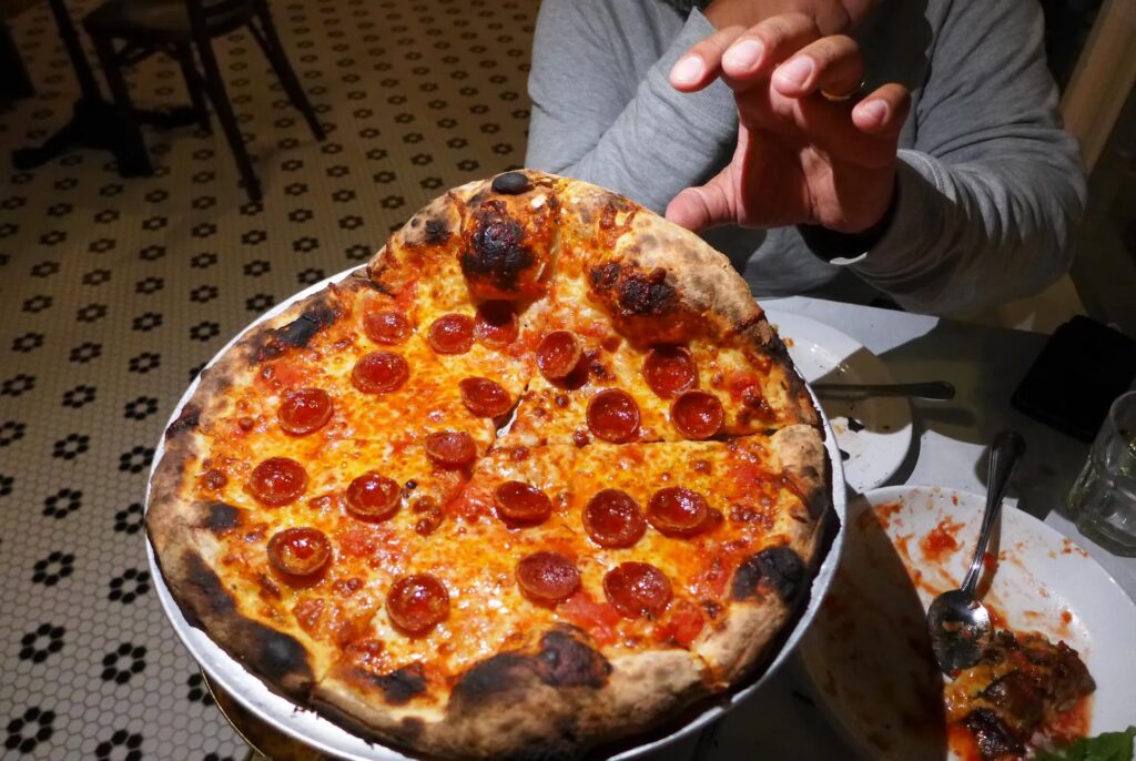 Zasadniczo rzeczy w piekarniku przypalają się, ponieważ spędzają w nim zbyt dużo czasu. Jednym z rozwiązań zapobiegania przypalaniu byłoby wyjmowanie ich wcześniej. Ale wtedy problem polega na tym, że nie będą całkowicie ugotowane – tak byś pomyślał, ale to nie do końca prawda. Kiedy wyjmujesz pizzę z piekarnika, nadal jest bardzo gorąca. Tak gorąca, że mogłabyś na niej lub w niej coś ugotować. Chodzi o to, że kiedy wyjmujesz pizzę z piekarnika, ciasto w środku nadal się gotuje, podobnie jak dodatki na wierzchu pizzy. Trzymanie pizzy w piekarniku zbyt długo z obawy, że nie zostanie odpowiednio ugotowana, jest dużym błędem. Powinieneś wyjąć pizzę, gdy tylko spód będzie wyglądał na gotowy, i pozostawić ją do ostygnięcia w temperaturze pokojowej. Jeśli spróbujesz przyspieszyć proces chłodzenia, istnieje duże prawdopodobieństwo, że ciasto nie będzie miało wystarczającej ilości ciepła, aby odpowiednio ugotować się w środku.