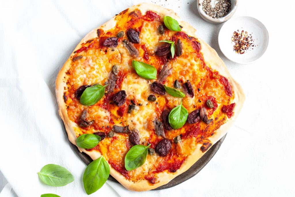 - Wegetariańska Pizza Puttanesca: Wystarczy pominąć anchois. Zwiększ ilość oliwek i kaparów, aby zachować intensywność smaku.