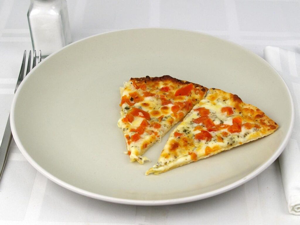 Serowa pizza na cienkim cieście zawiera mniej węglowodanów niż pizza na grubym cieście, stanowiąc około 7% zalecanego dziennego spożycia.